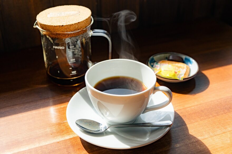 そして食後にはモカ、マンデリン、キリマンジャロ、コロンビアなどの中から、客の好みや雰囲気に合わせて淹れてくれます。