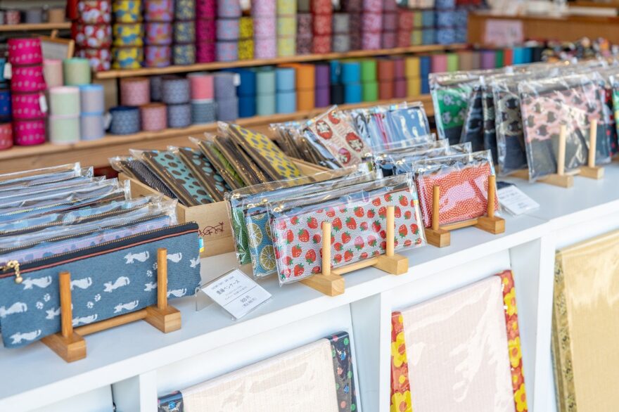 また、ポーチや小銭入れなど、畳縁で作られたユニークなオリジナルグッズも目を引きます。