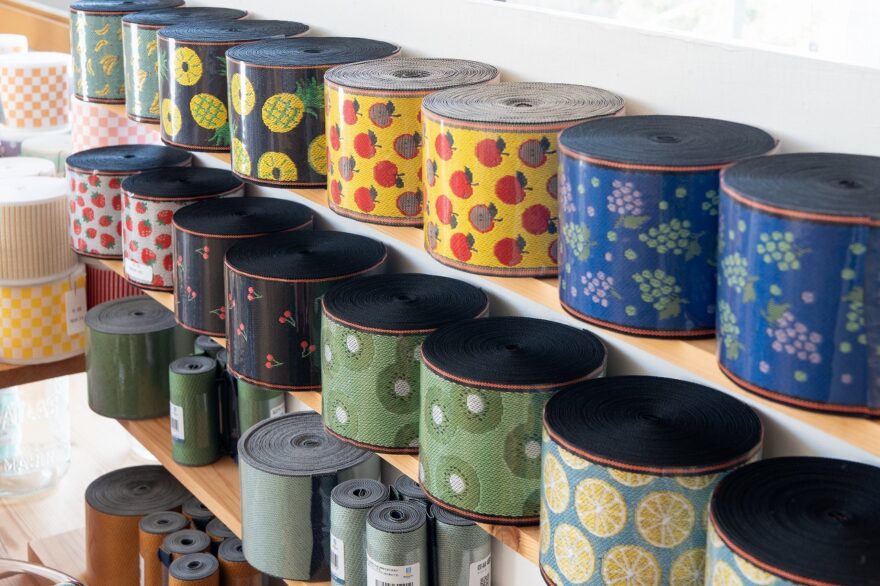 老舗の織元でありながらも、新しいものを生み出しつづける姿勢。 「畳縁をもっと身近に楽しんでほしい」という遊び心が、お店の隅々から伝わってきます☺️