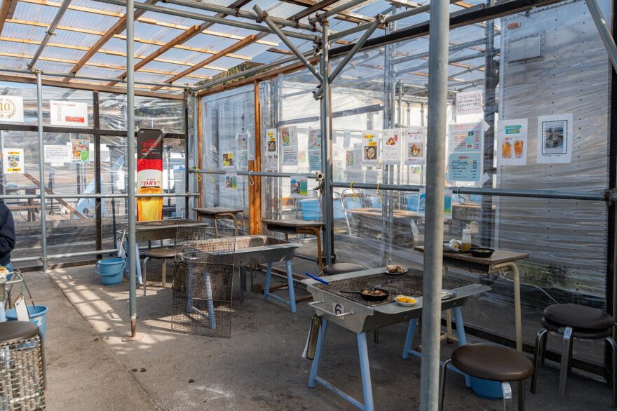 牡蠣小屋はテントで周囲が囲まれているので、冷たい海風も気になりません◎