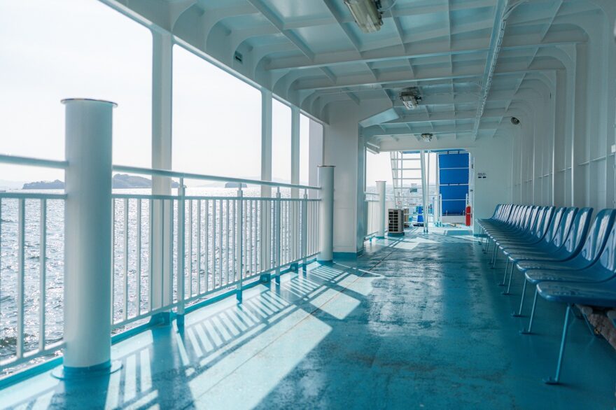 牛窓港からフェリーに乗り込み、わずか5分ほどの船旅ですが気軽にプチトリップ気分を味わうことができます🛥️