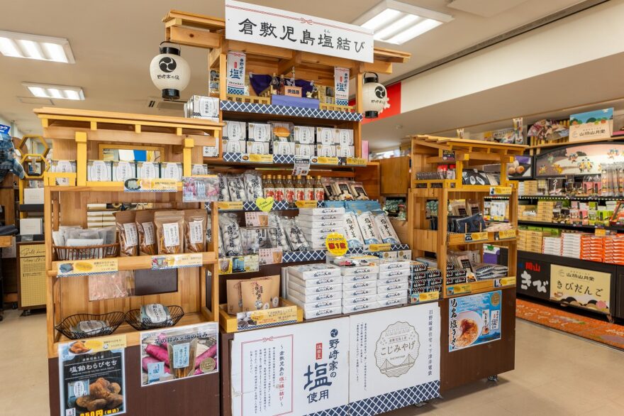やはりここでも、「倉敷児島塩結びプロジェクト」の商品は見逃せません👀 塩クリーム大福や、児島塩ラーメンなど、塩を使ったお土産のラインナップが充実していました。