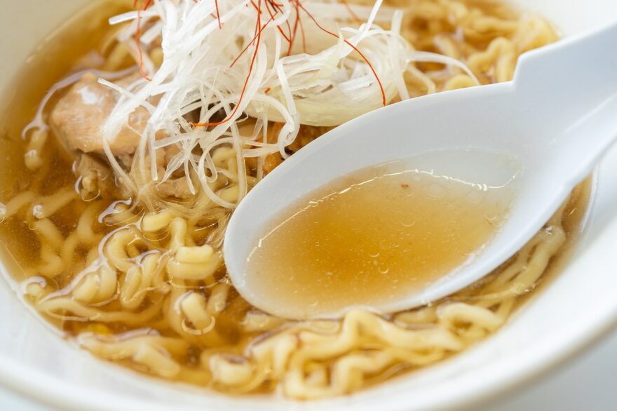 黄金色に輝くスープは、鶏の旨みや焦がしネギ、ニンニクの香ばしさが溶け出してコク深く、あっさりしているだけではなく程よくパンチがあります🤤