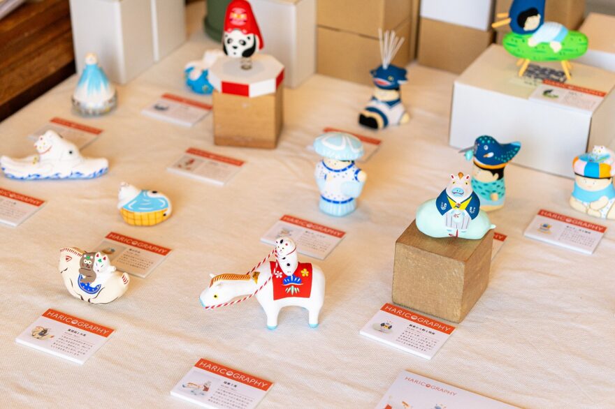 『HARICOGRAPHY』の張子人形は来年の干支・馬のデザインをはじめ、可愛い表情の作品が目を引きます👀