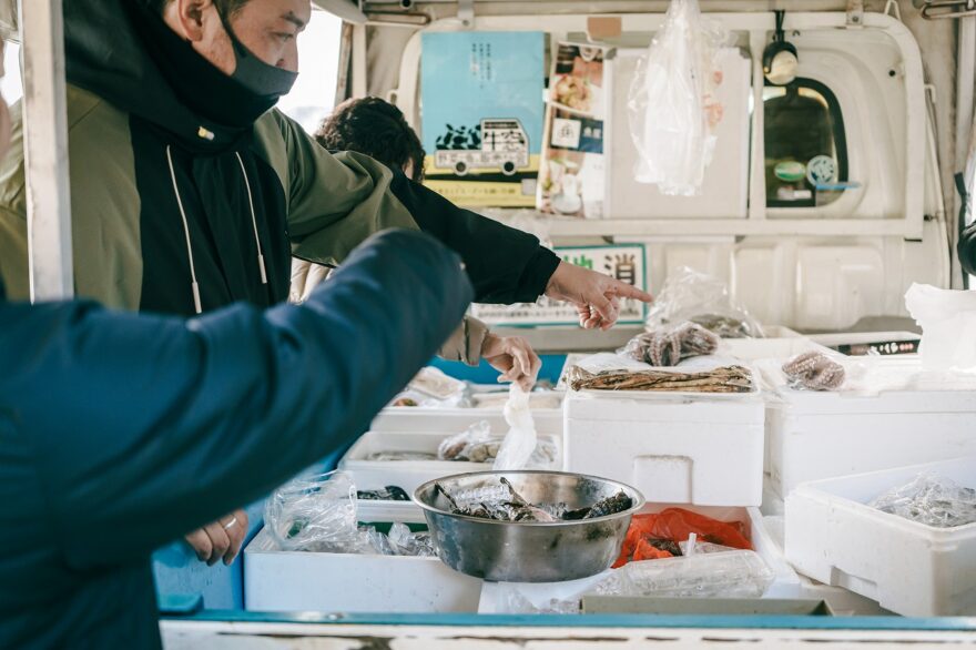 値段や鮮度はもちろん、その食材にまつわる話やおすすめの食べ方まで聞きながら選べると、普段の買い物とは違う楽しみ方ができますね。